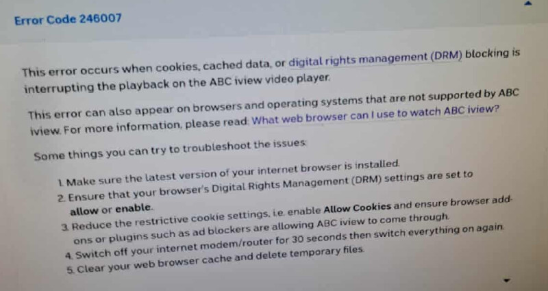 I’ve not had this error on iView specifically, but I’ve had it happen before when trying to watch Binge on Ubuntu in 2020. Long story short is that the DRM module that a lot of companies use is designed principally for Windows and Mac. While the bigger companies have big enough tech teams to make sure everything works with a variety of OSes, I’m not surprised that some of the smaller Aussie Companies don’t.