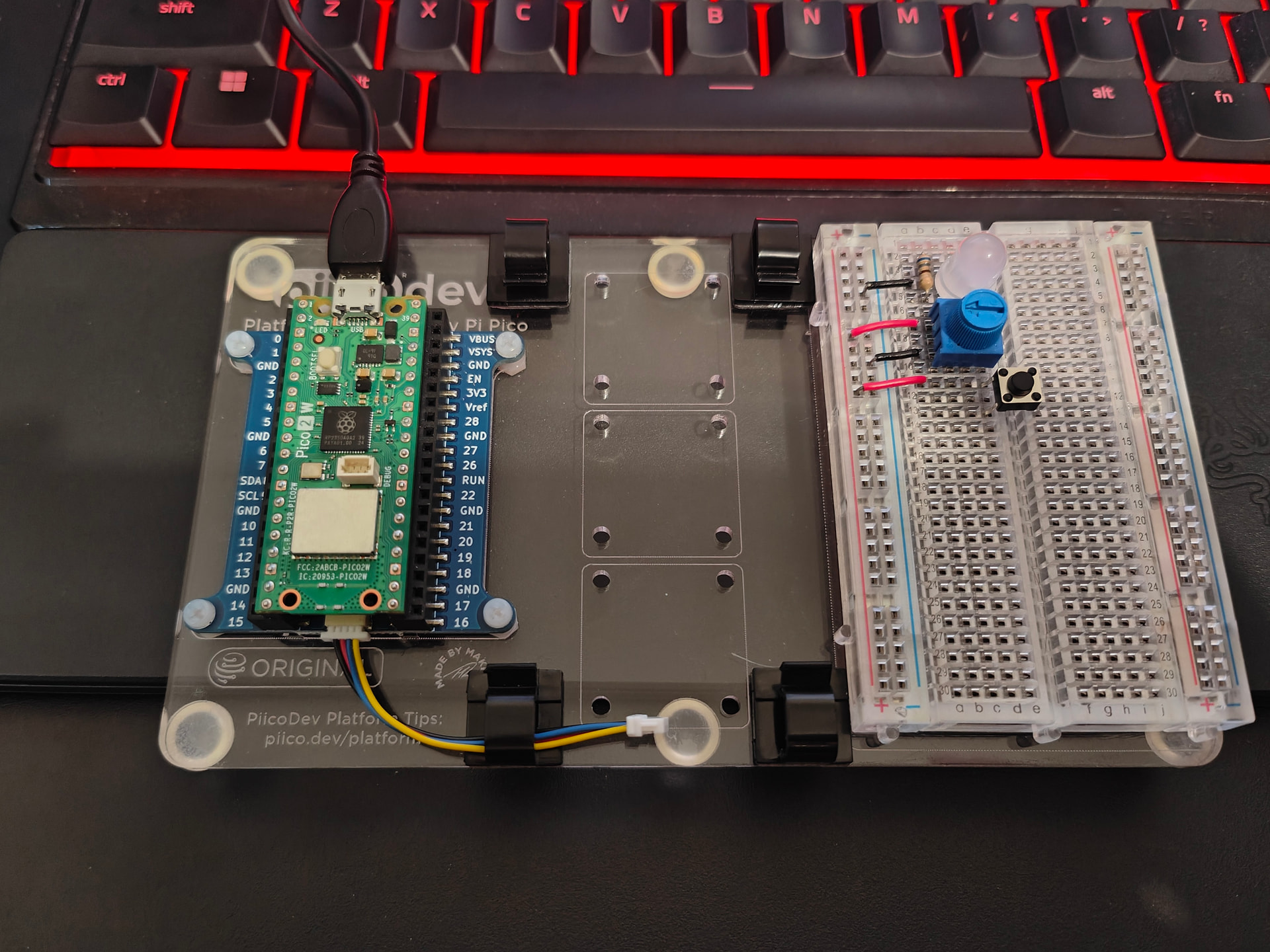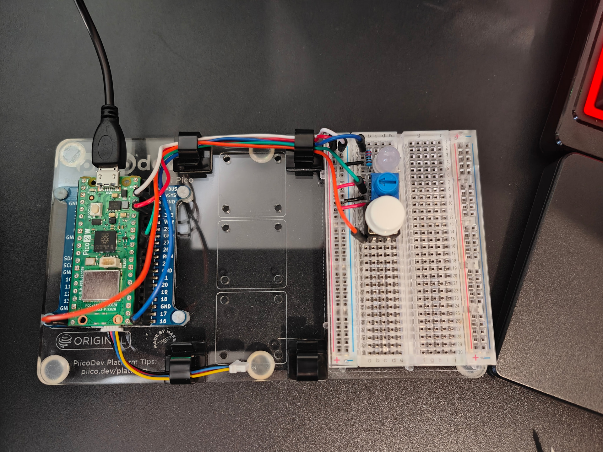 If you care to look at your pic in post 5 you will see at top left that they both under the white wire. Now it is difficult to decide after that which red wire is which without really going off to study up the Pico pin outs and decide from that. Also on the breadboard it is not immediately obvious that the 2 horizontal wires are actually links to the positive bus. Also it is impossible from the pic to see exactly which pins the White, Red and green wire connect to on the Pico.