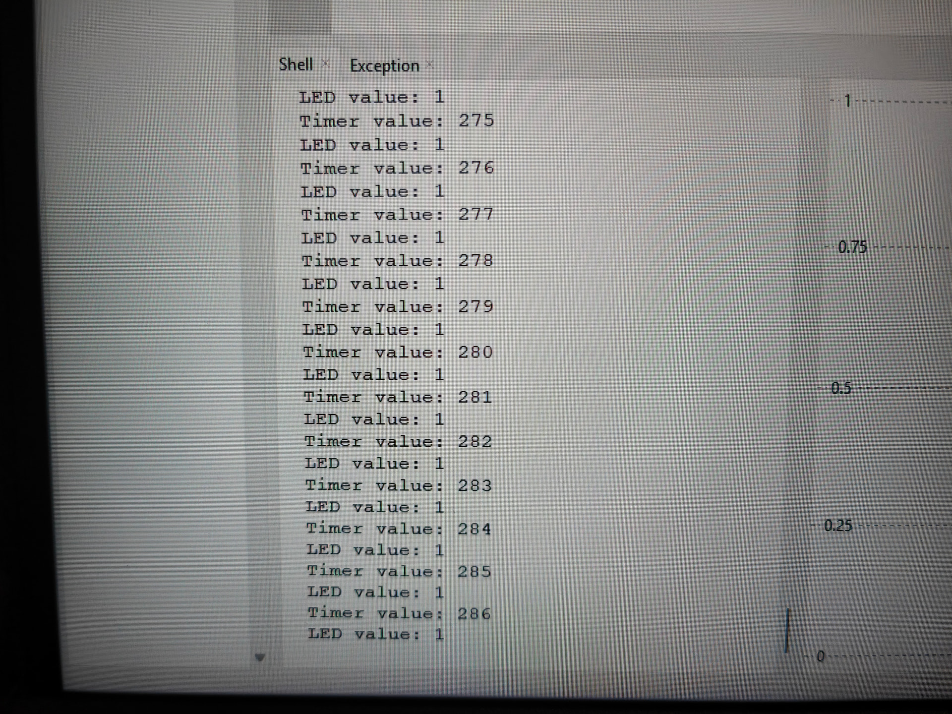 Additionally, if i start the code with the 3v3 wire diconnected, the timer stays at 0, but as soon as I connect anything the timer starts counting again in a locked state, only stopping if and only if I remove the USB power cable.