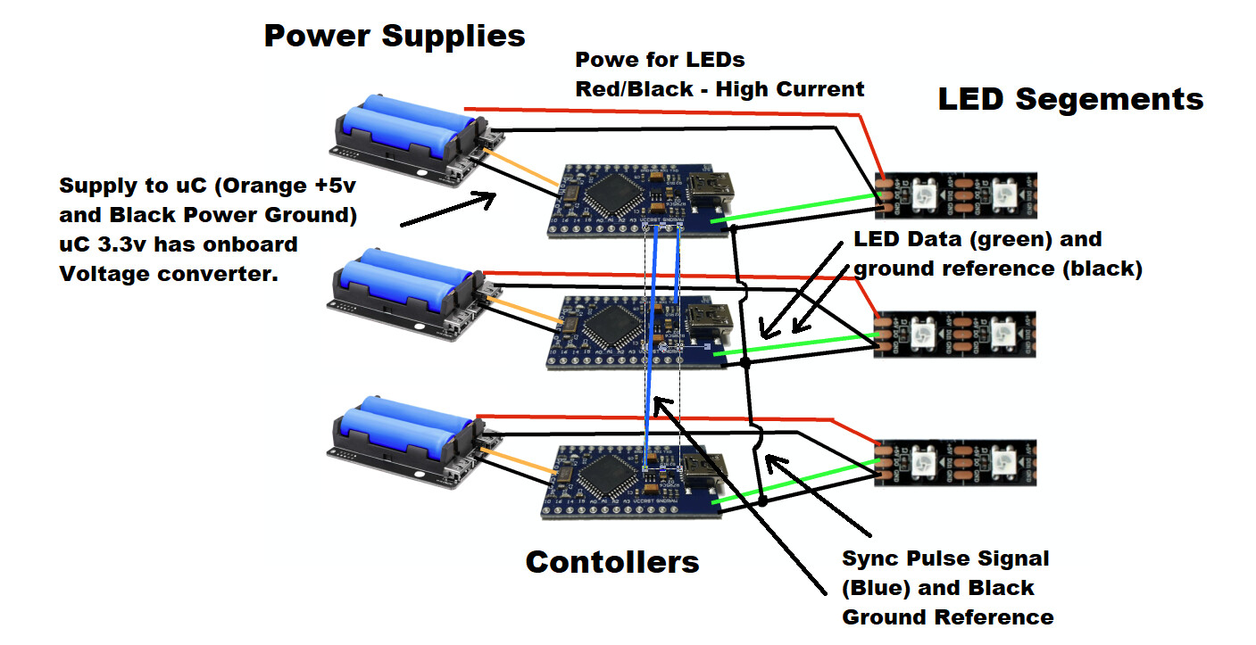 So with a single power supply (if it can be found), you can have one big string with one uC so no sync needed.