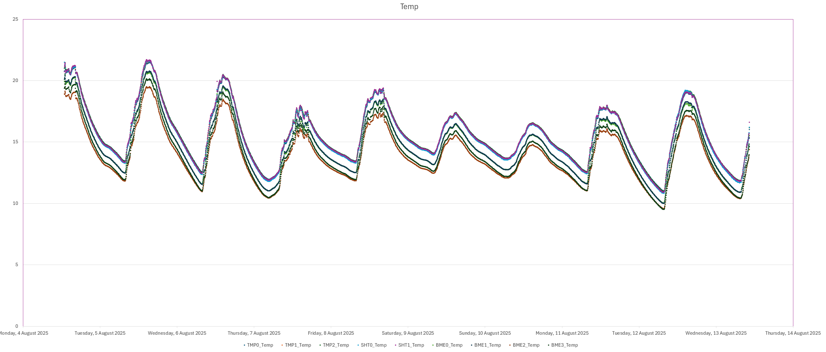 I’ve got a test-setup running now, 3 x TMP’s, 3 x BME’s (one being the oldest I could find from our on hand kit), and an SHT40 + SHT41 (much better sentiment around the net).